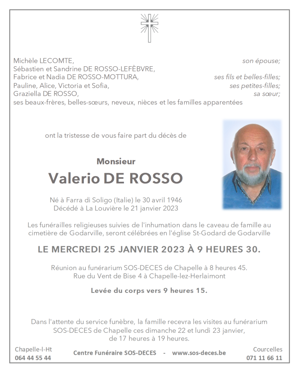 Décédé à La Louvière le 21 janvier 2023 à l'âge de 76 ans