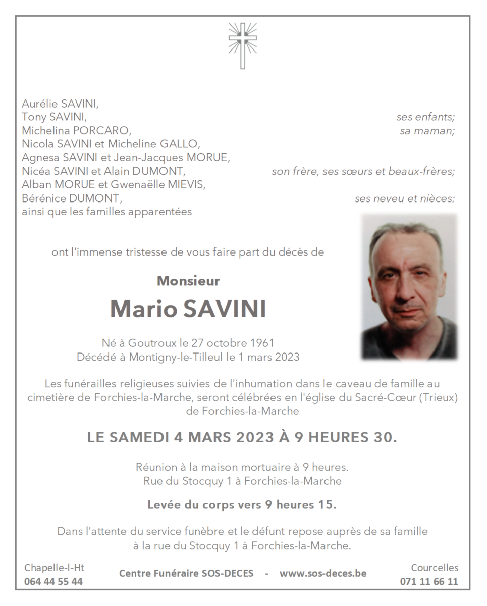Décédé à Montigny-le-Tilleul le 01 mars 2023 à l'âge de 61 ans