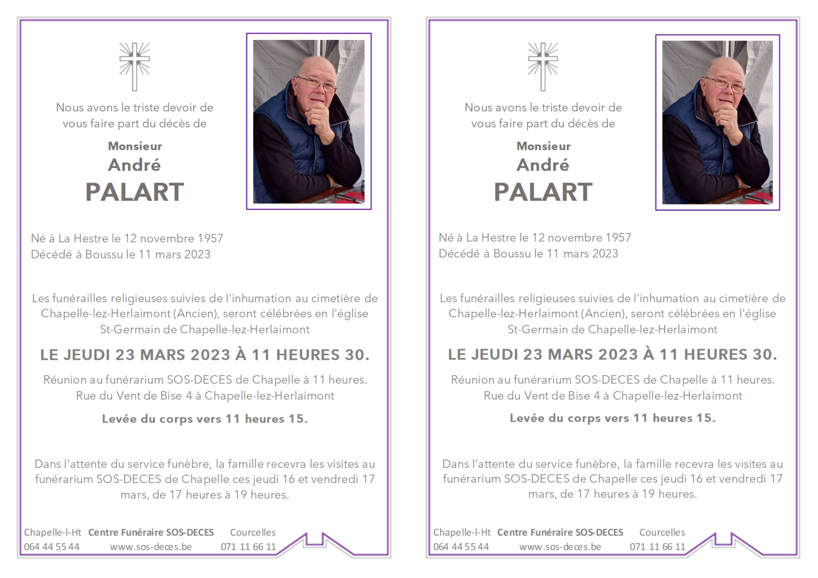 Décédé à Boussu le 11 mars 2023 à l'âge de 65 ans