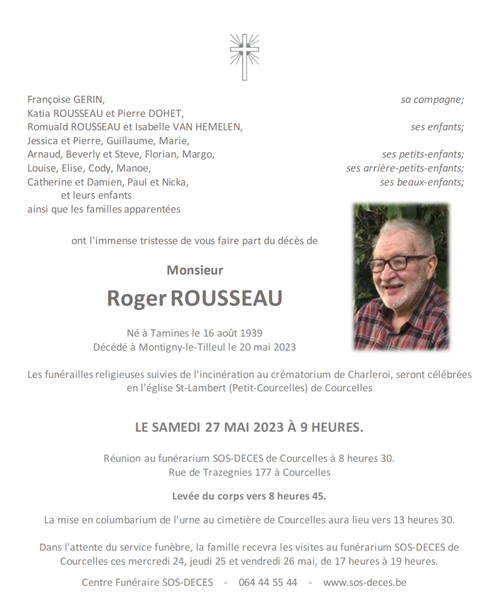 Décédé à Montigny-le-Tilleul le 20 mai 2023 à l'âge de 83 ans