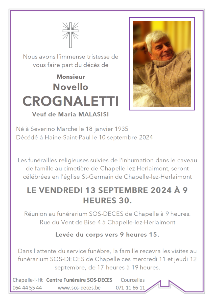 Décédé à Haine-Saint-Paul le 10 septembre 2024 à l'âge de 89 ans