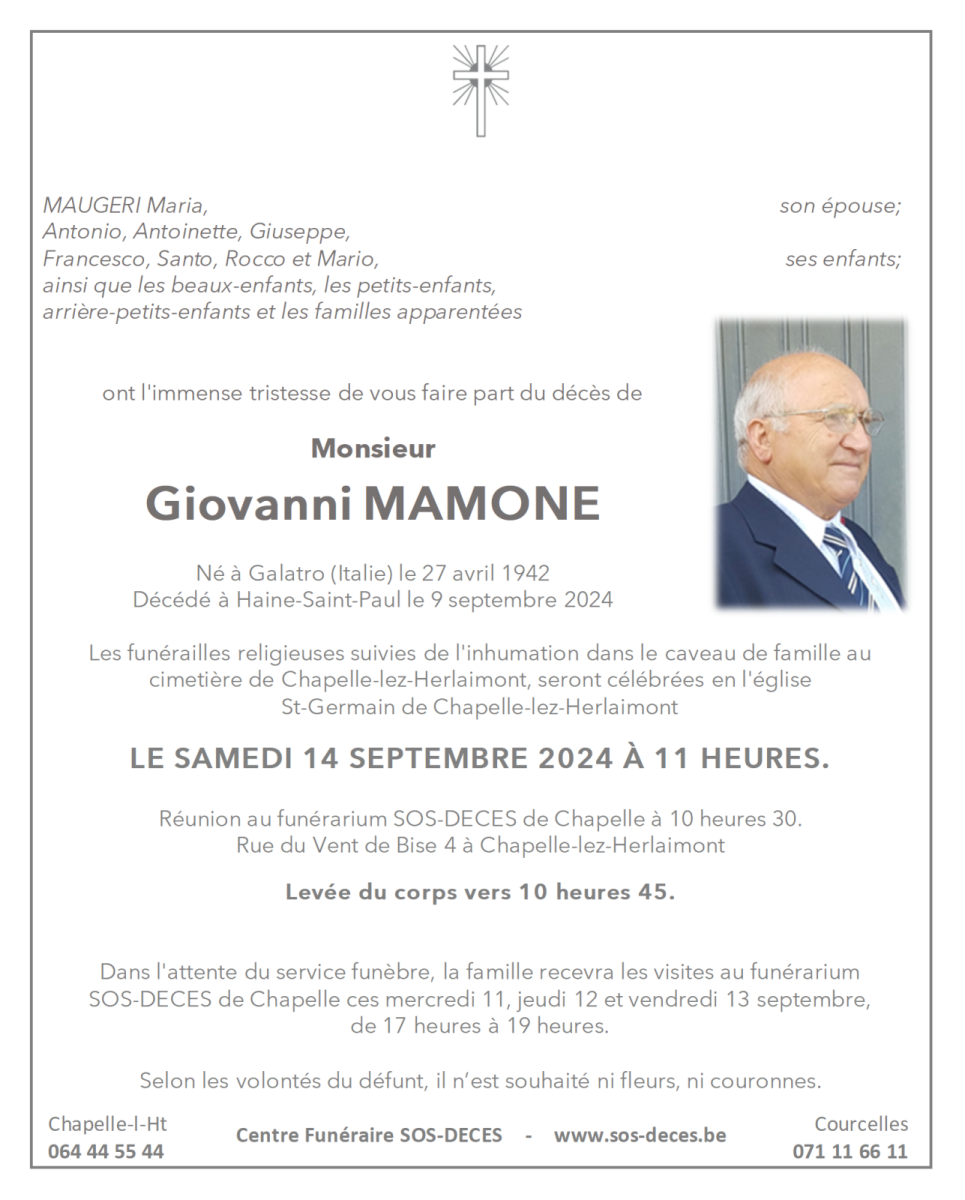 Décédé à Haine-Saint-Paul le 09 septembre 2024 à l'âge de 82 ans