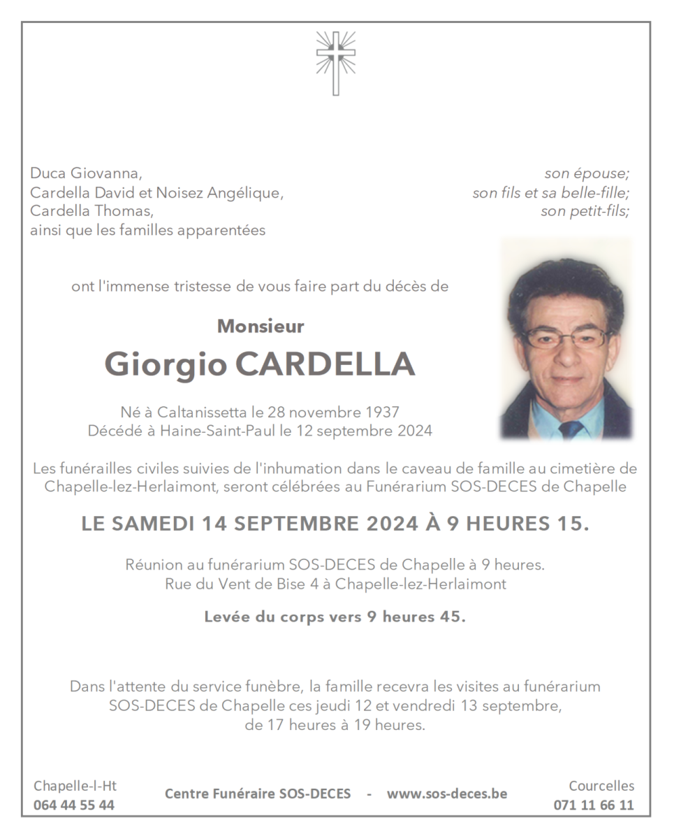 Décédé à Haine-Saint-Paul le 12 septembre 2024 à l'âge de 86 ans
