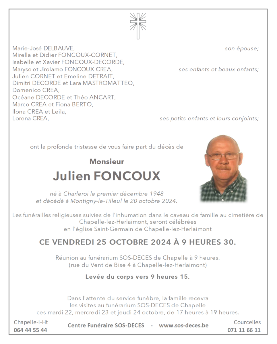 Décédé à Montigny-le-Tilleul le 20 octobre 2024 à l'âge de 75 ans