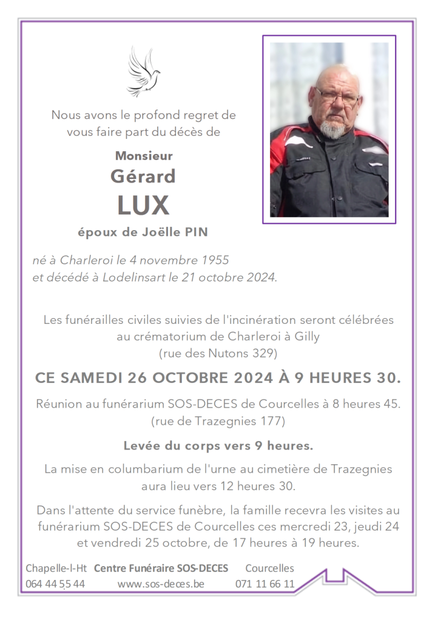 Décédé à Lodelinsart le 21 octobre 2024 à l'âge de 68 ans