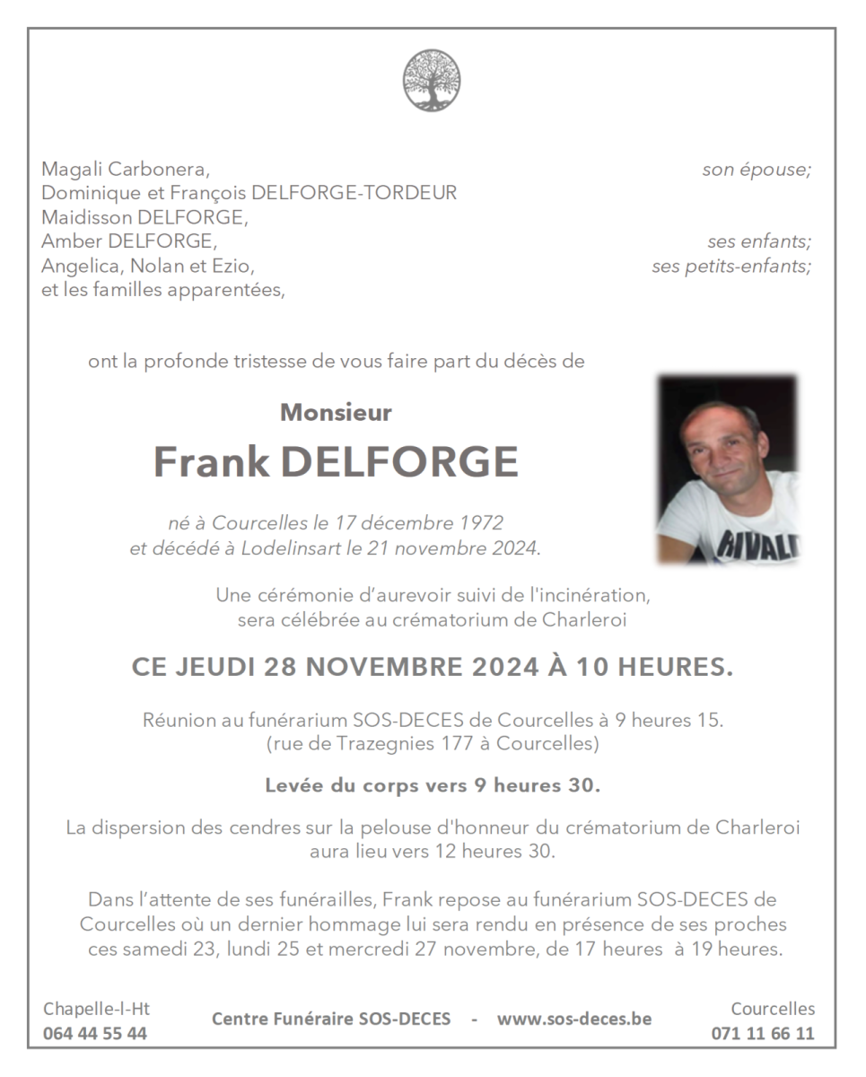 Décédé à Lodelinsart le 21 novembre 2024 à l'âge de 51 ans