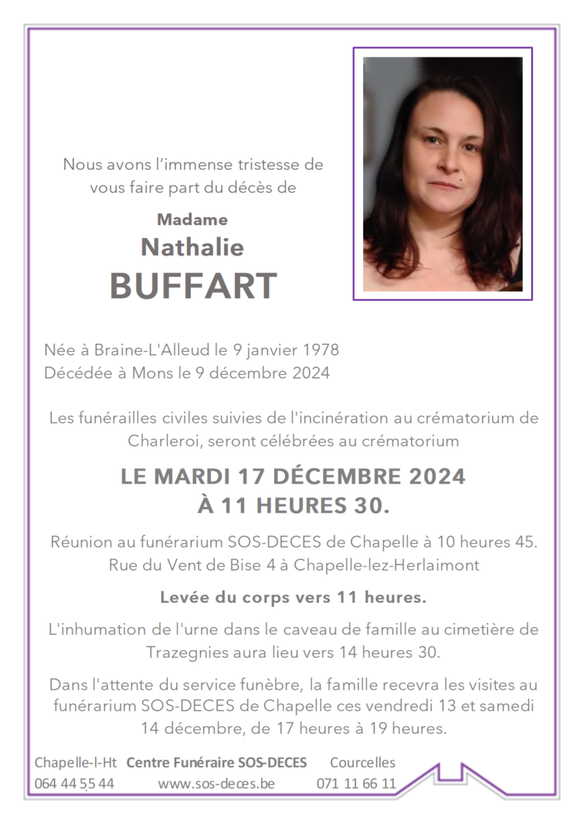 Décédée à Mons le 09 décembre 2024 à l'âge de 46 ans