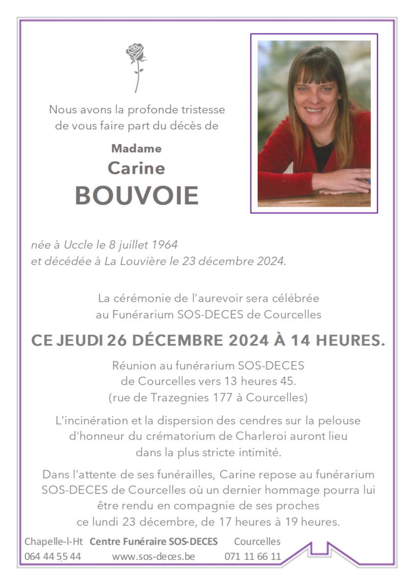 Décédée à La Louvière le 23 décembre 2024 à l'âge de 60 ans