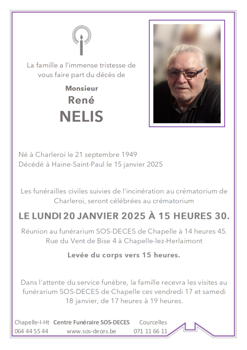 Décédé à Haine-Saint-Paul le 15 janvier 2025 à l'âge de 75 ans
