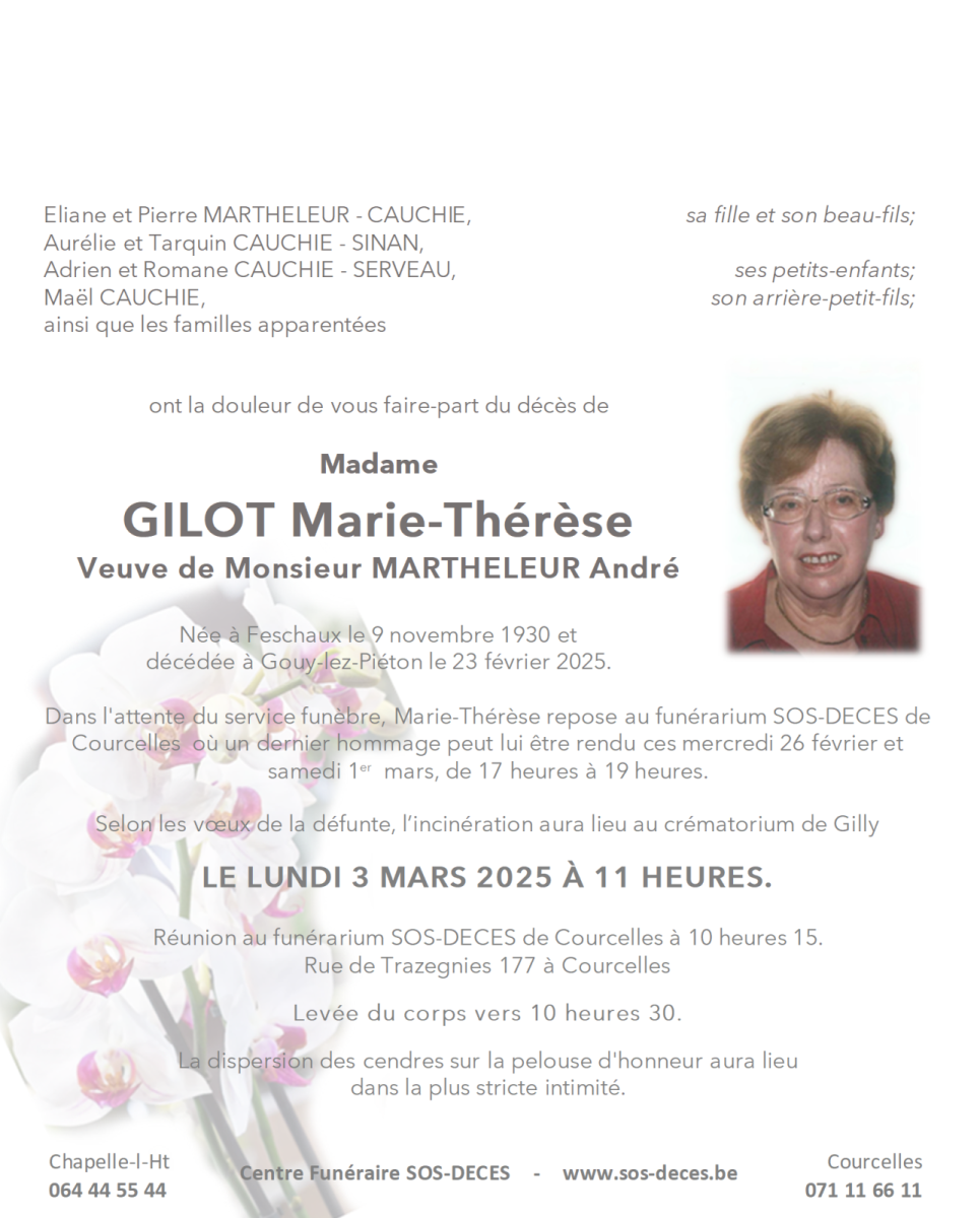 Décédée à Gouy-lez-Piéton le 23 février 2025 à l'âge de 94 ans