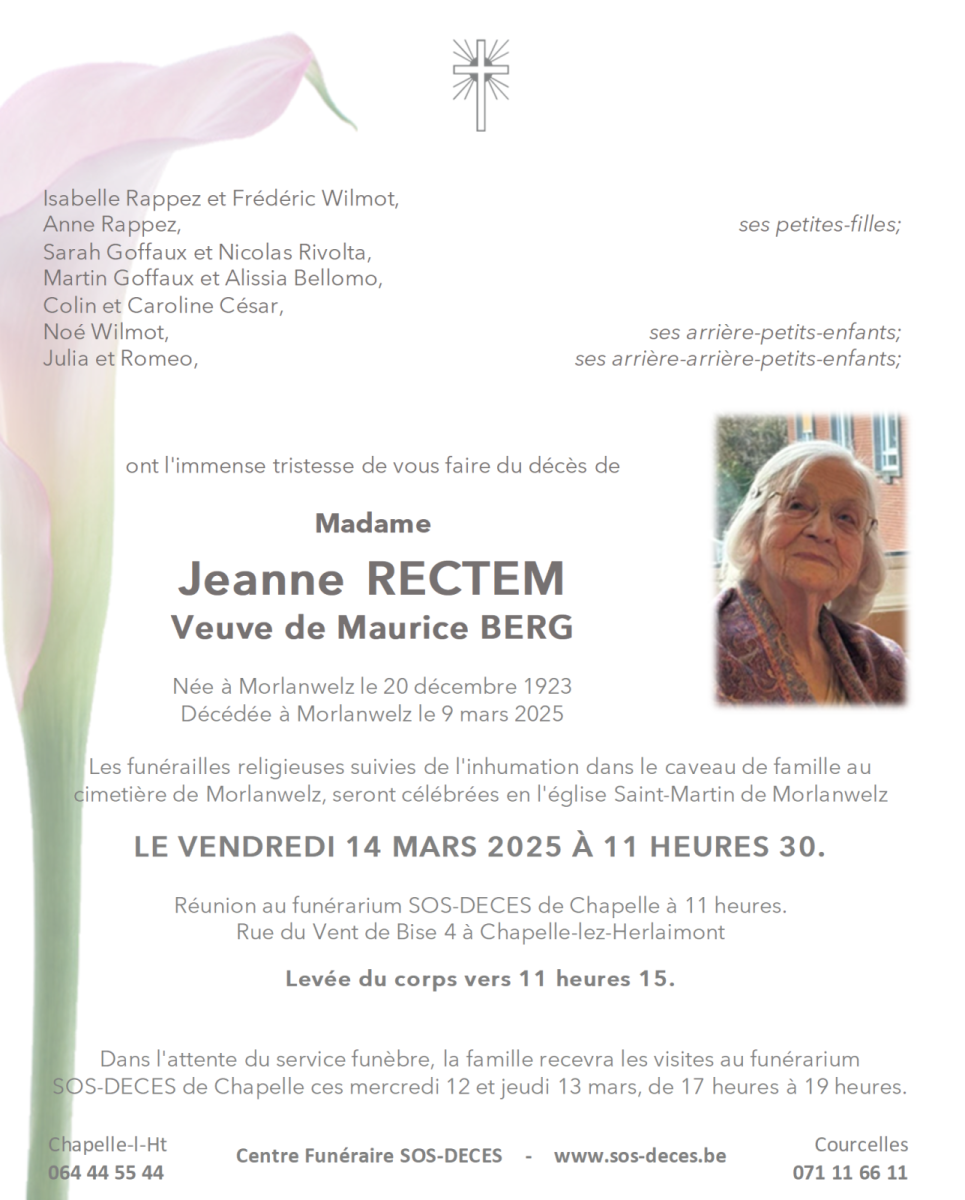 Décédée à Morlanwelz le 09 mars 2025 à l'âge de 101 ans
