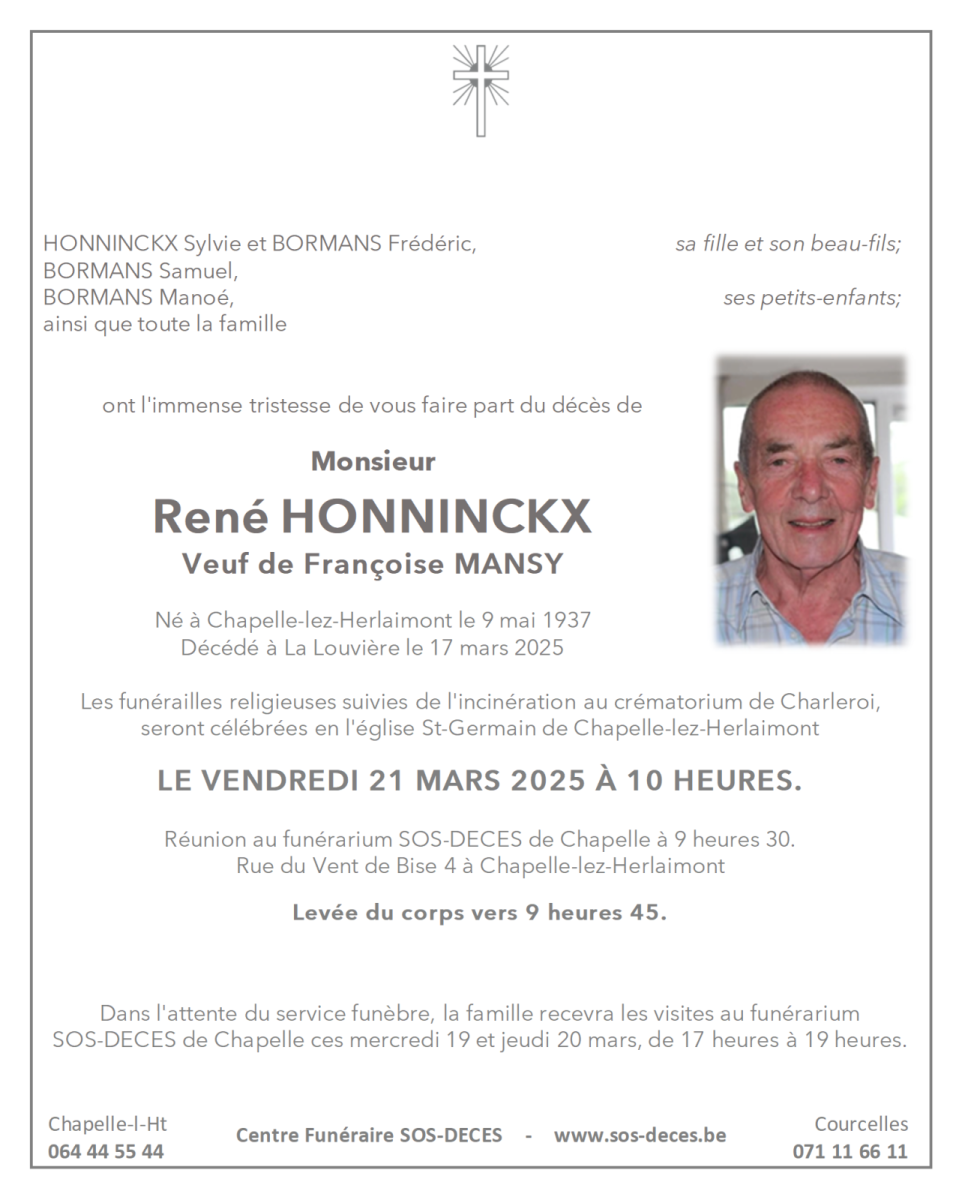 Décédé à La Louvière le 17 mars 2025 à l'âge de 87 ans