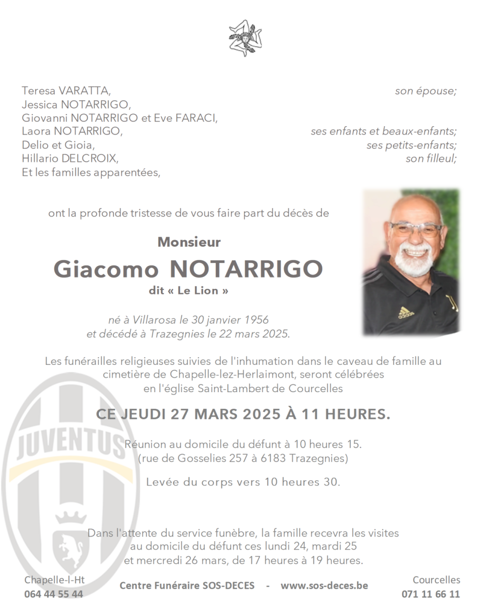Décédé à Trazegnies le 22 mars 2025 à l'âge de 69 ans