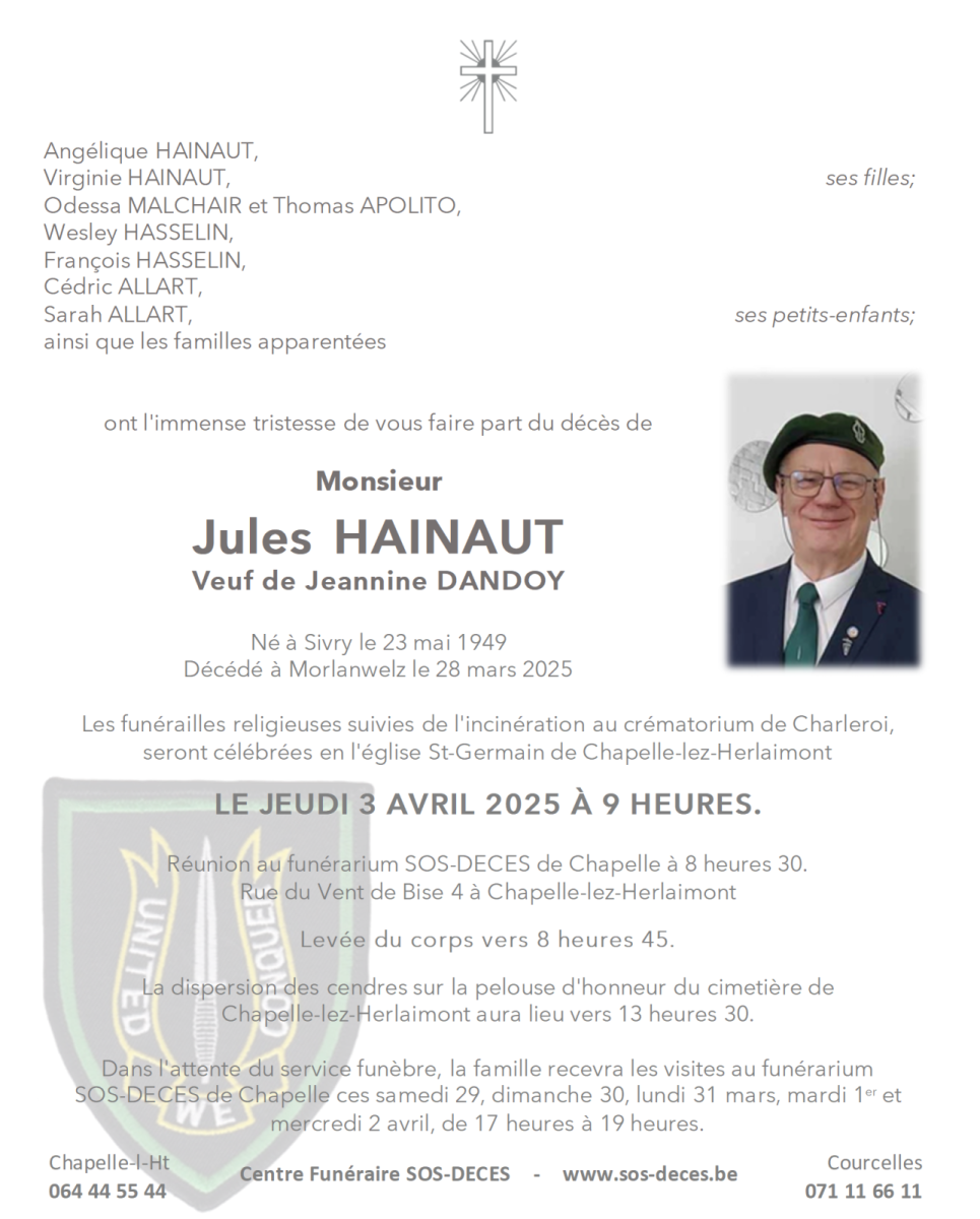 Décédé à Morlanwelz le 28 mars 2025 à l'âge de 75 ans