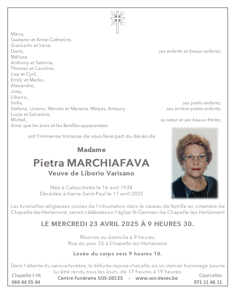 Décédée à Haine-Saint-Paul le 17 avril 2025 à l'âge de 87 ans