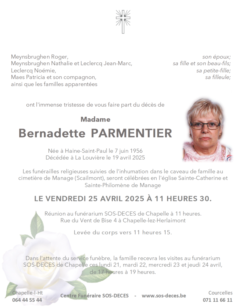 Décédée à La Louvière le 19 avril 2025 à l'âge de 68 ans