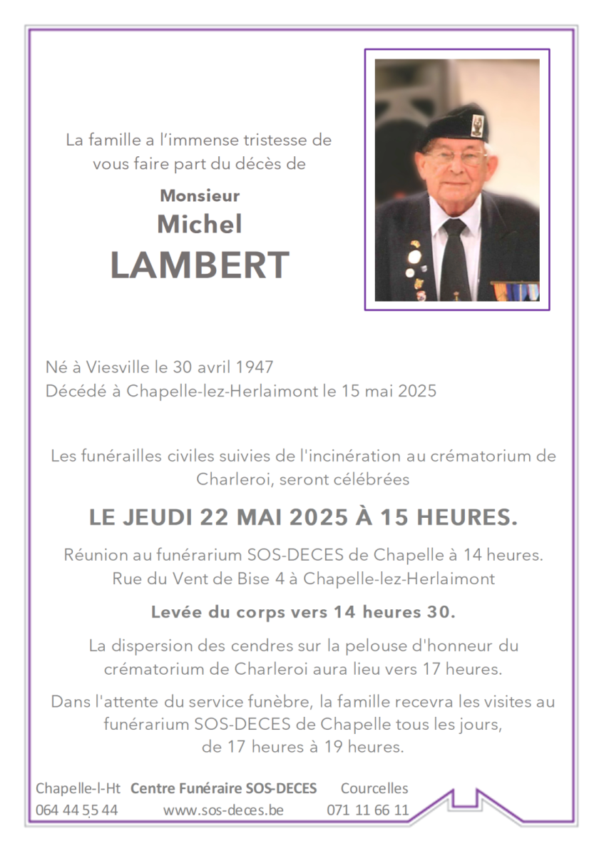 Décédé à Chapelle-lez-Herlaimont le 15 mai 2025 à l'âge de 78 ans