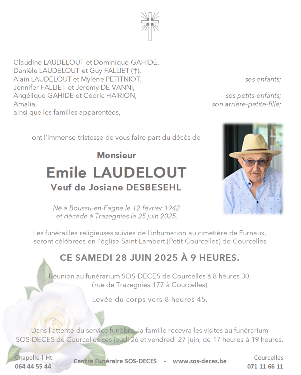 Décédé à Trazegnies le 25 juin 2025 à l'âge de 83 ans
