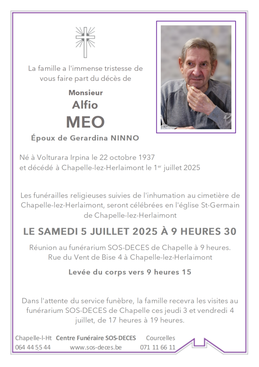 Décédé à Chapelle-lez-Herlaimont le 01 juillet 2025 à l'âge de 87 ans