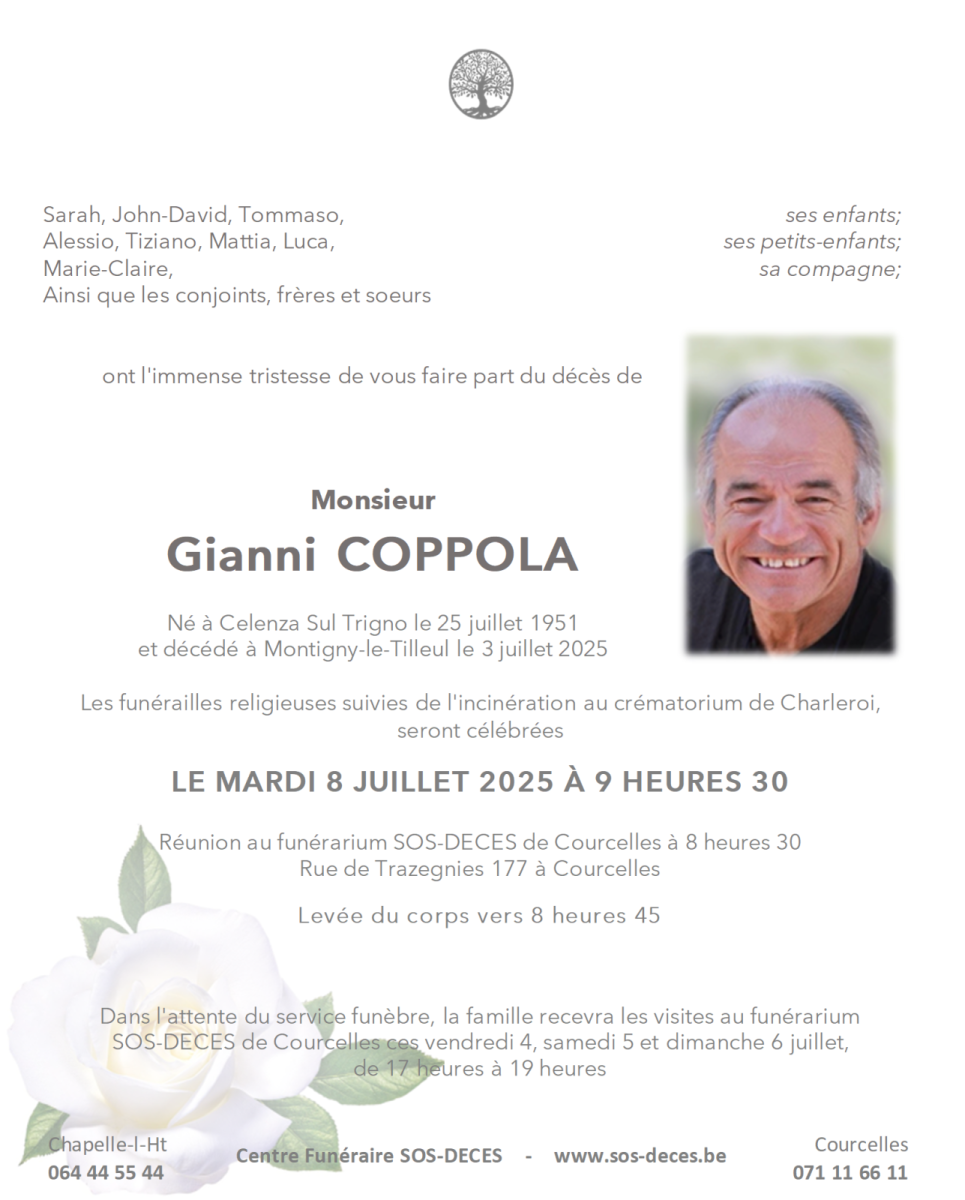 Décédé à Montigny-le-Tilleul le 03 juillet 2025 à l'âge de 73 ans