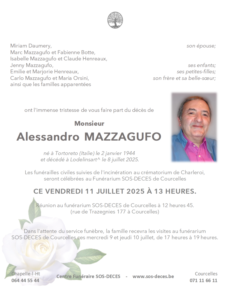 Décédé à Lodelinsart le 08 juillet 2025 à l'âge de 81 ans