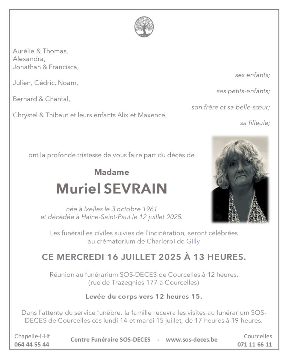 Décédée à Haine-Saint-Paul le 12 juillet 2025 à l'âge de 63 ans