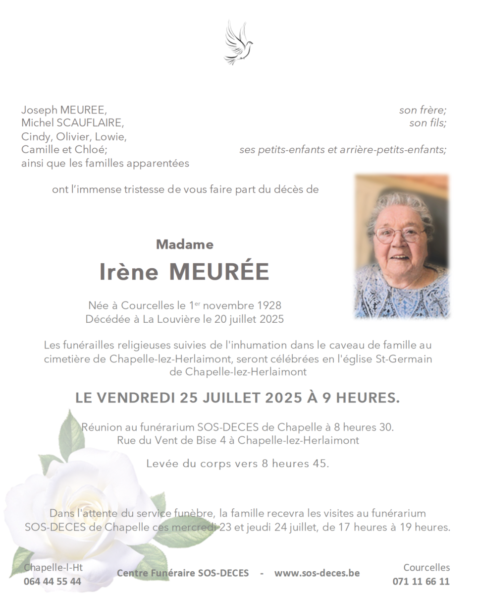 Décédée à La Louvière le 20 juillet 2025 à l'âge de 96 ans