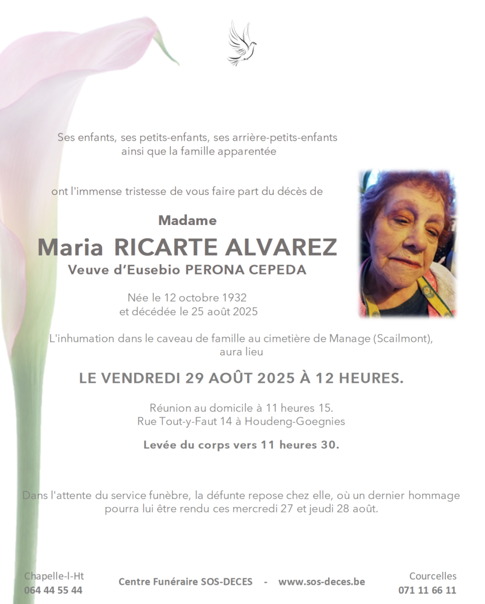 Décédée à Houdeng-Goegnies le 25 août 2025 à l'âge de 92 ans