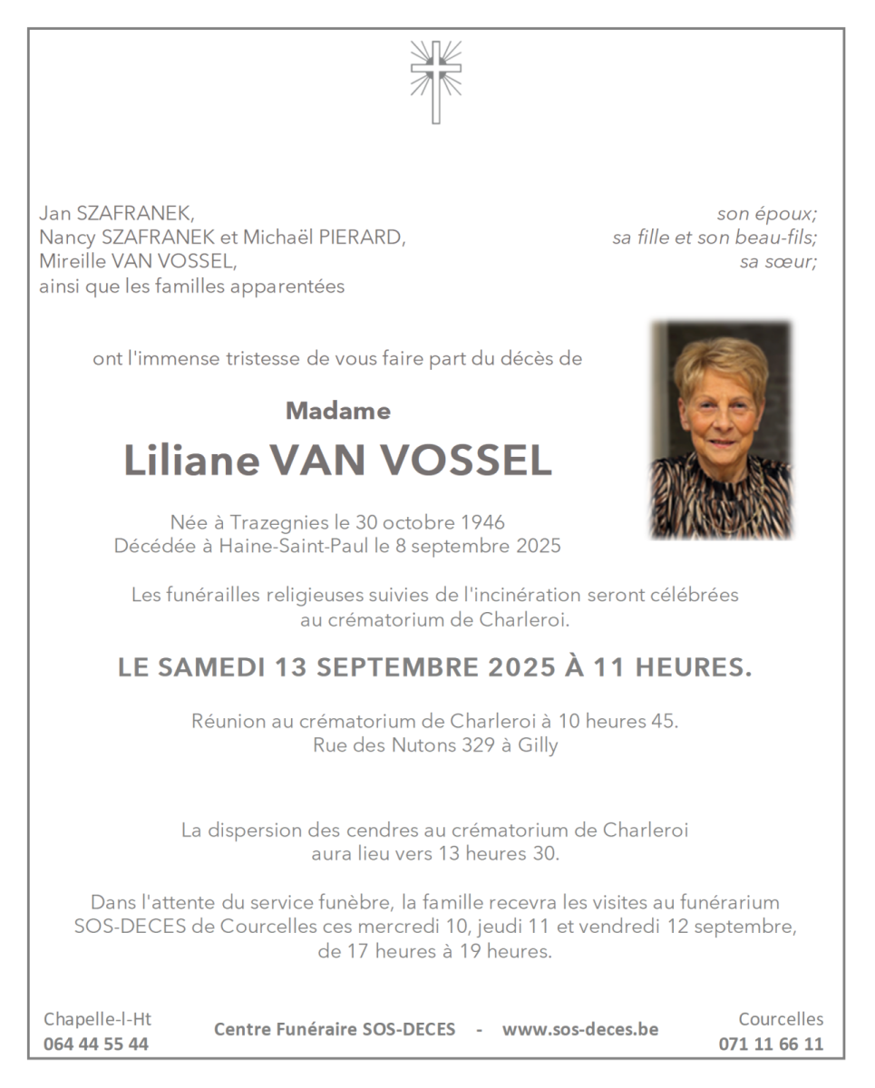 Décédée à Haine-Saint-Paul le 08 septembre 2025 à l'âge de 78 ans