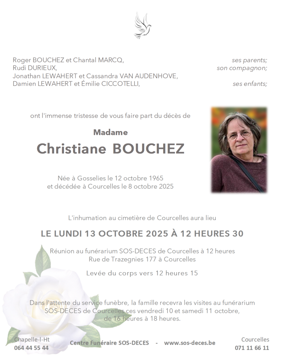 Décédée à Courcelles le 08 octobre 2025 à l'âge de 59 ans