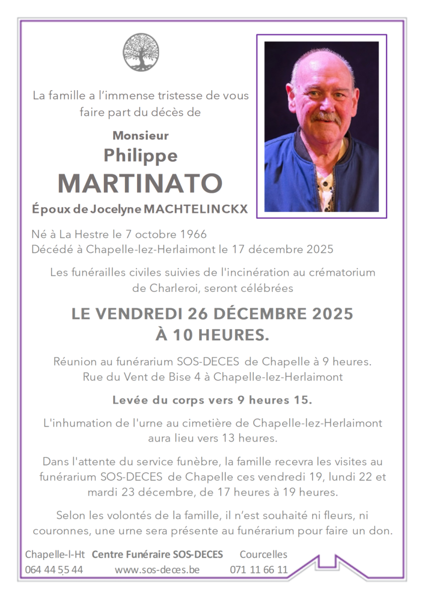 Décédé à Chapelle-lez-Herlaimont le 17 décembre 2025 à l'âge de 59 ans