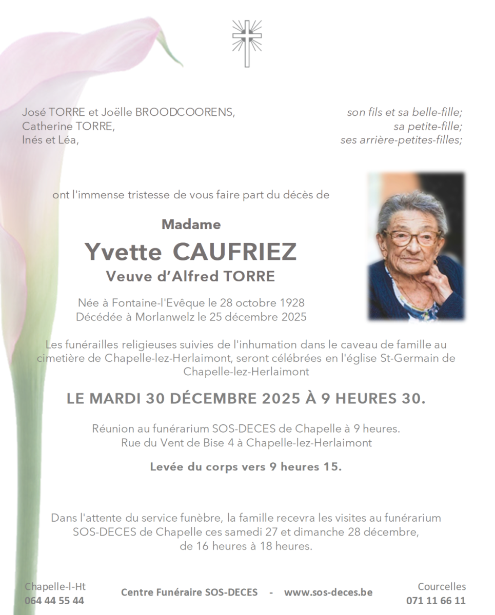 Décédée à Morlanwelz le 25 décembre 2025 à l'âge de 97 ans