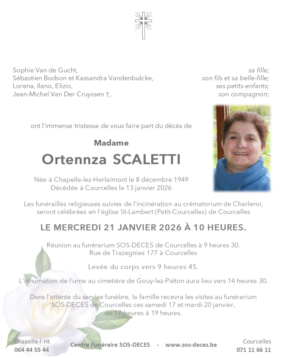 Décédée à Courcelles le 13 janvier 2026 à l'âge de 76 ans
