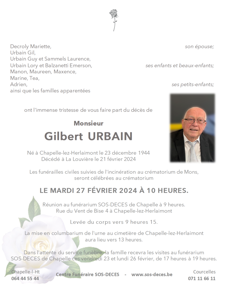Décédé à La Louvière le 21 février 2024 à l'âge de 79 ans