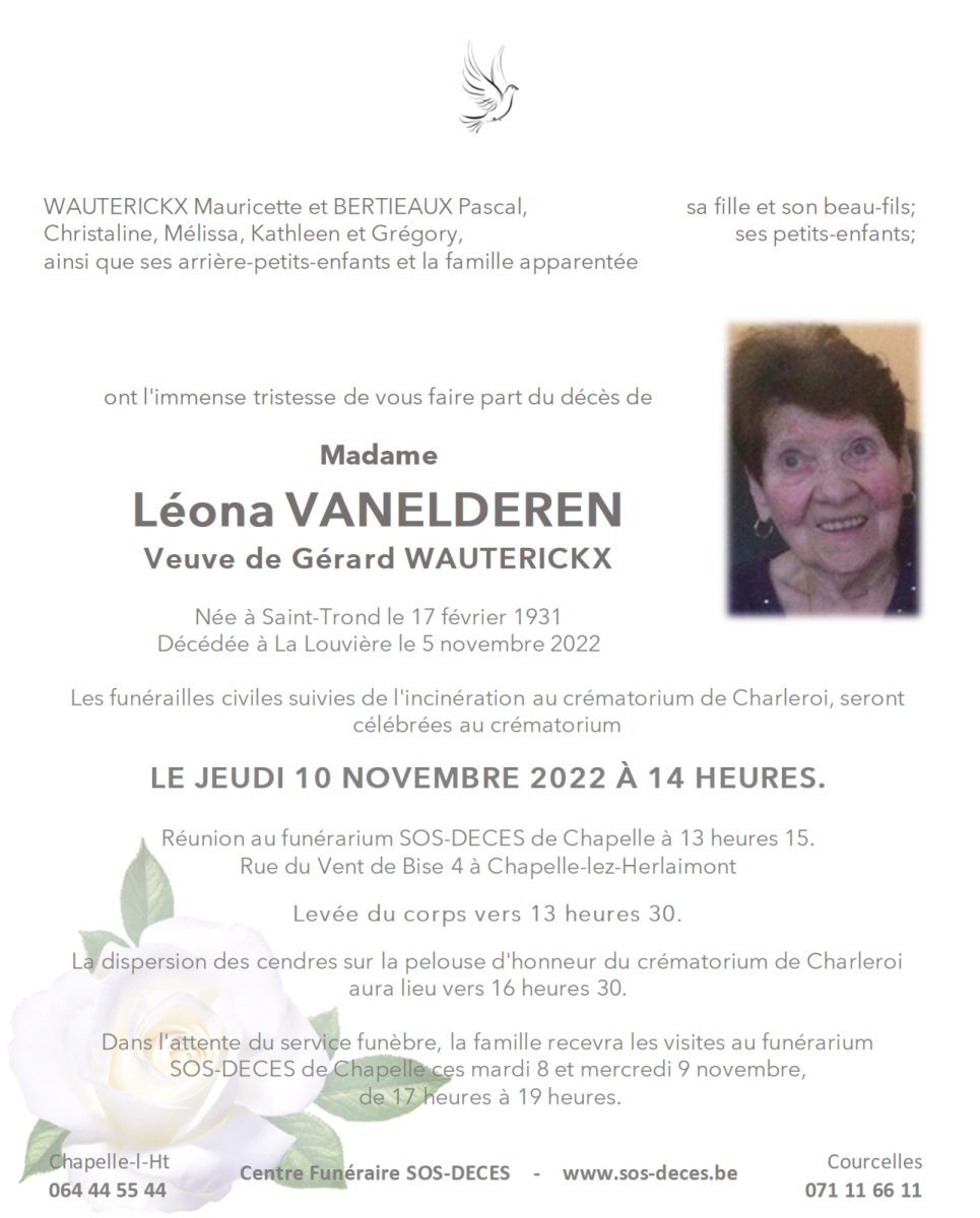 Décédée à Manage le 05 novembre 2022 à l'âge de 91 ans