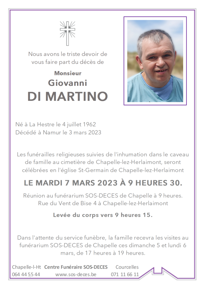 Décédé à Namur le 03 mars 2023 à l'âge de 60 ans