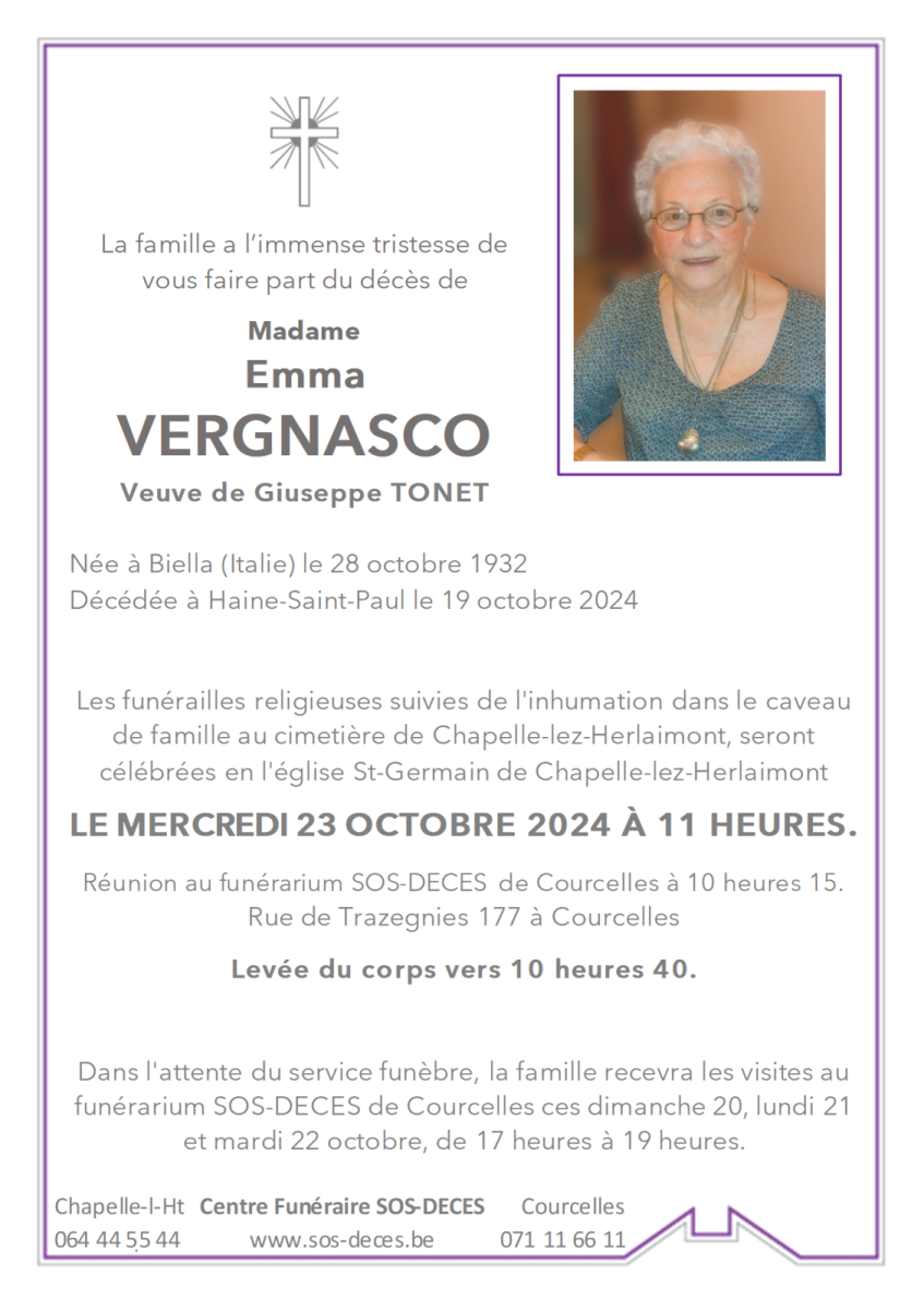 Décédée à Haine-Saint-Paul le 19 octobre 2024 à l'âge de 91 ans