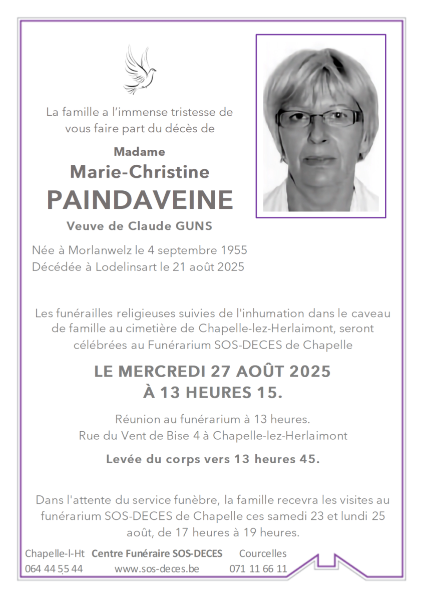 Décédée à Lodelinsart le 21 août 2025 à l'âge de 69 ans