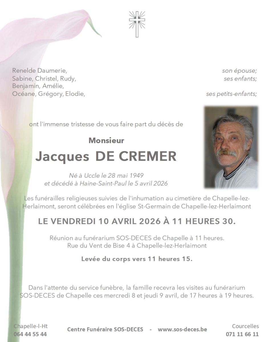 Décédé à Haine-Saint-Paul le 05 avril 2026 à l'âge de 76 ans
